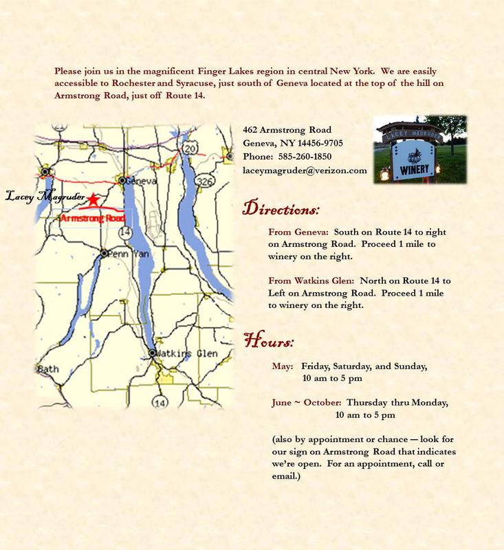 If you live in or are visiting New York and wish to buy our wine call us at 315-789-2528.